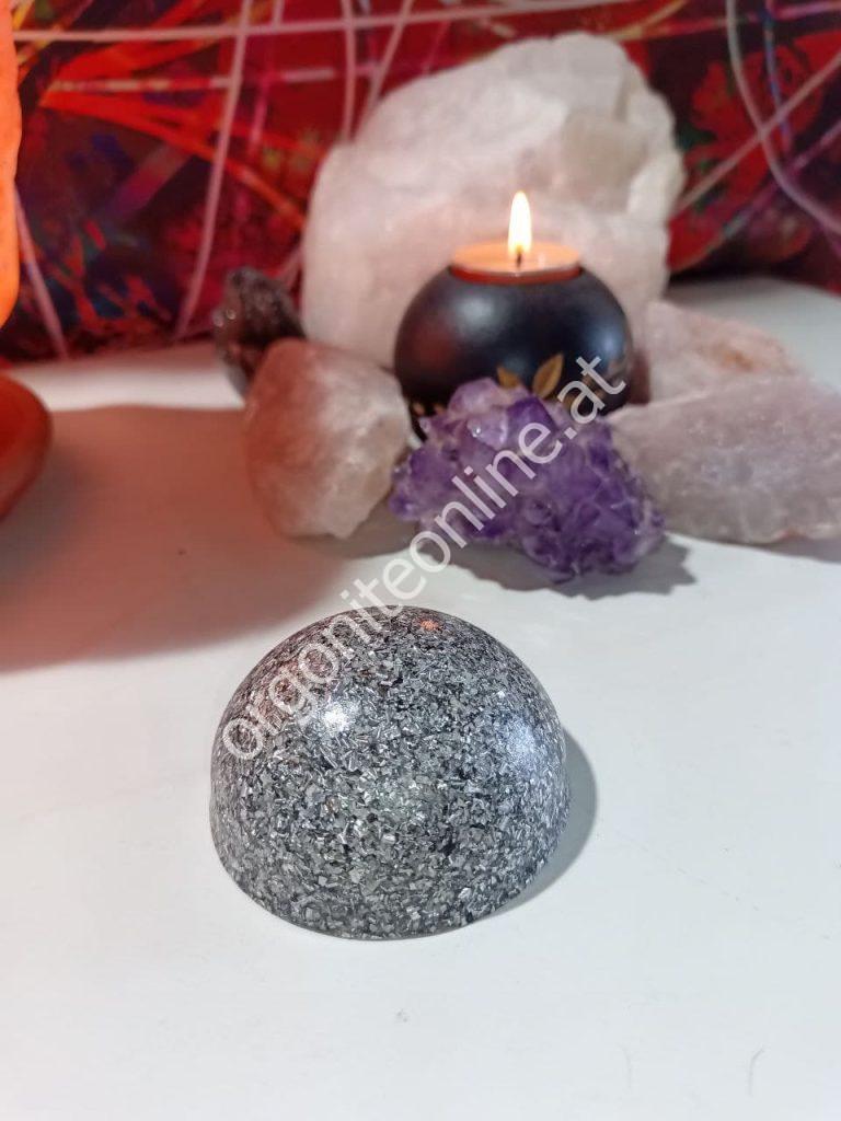 Ein Orgonit oder Orgonit besteht zu gleichen Anteilen aus Metallspänen (50%) und Polyesterharz (50%) und piezoelektrischem Quarzkristall.